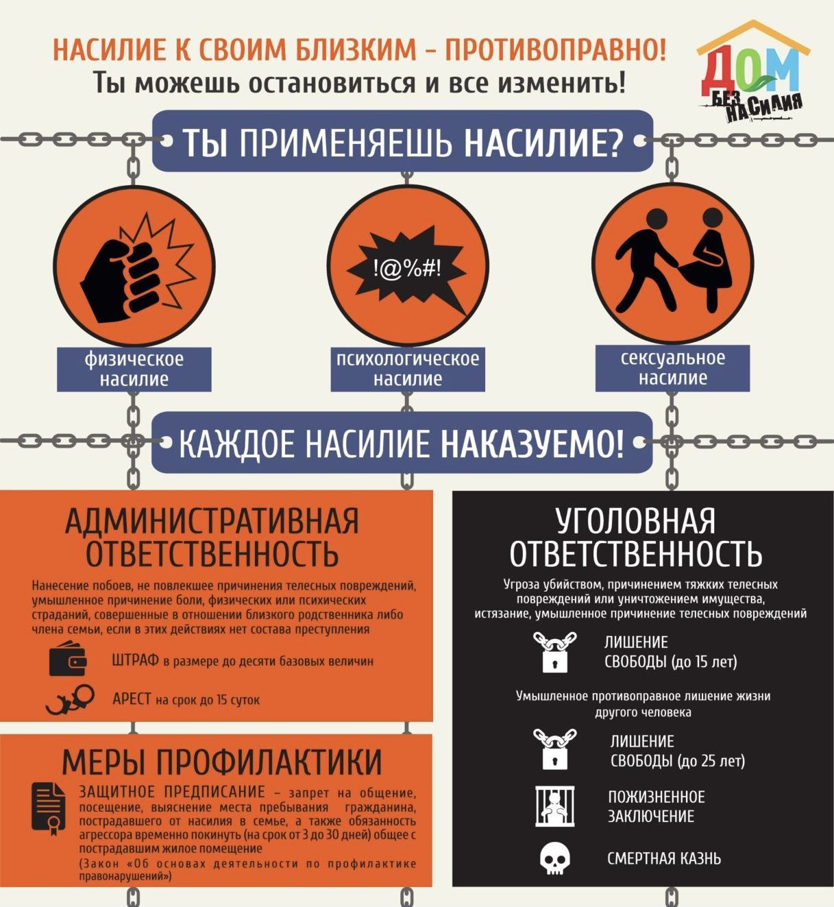 БЕЗНАКАЗАННОСТЬ – НАИБОЛЕЕ МОЩНЫЙ ФАКТОР, ПРОВОЦИРУЮЩИЙ И СТИМУЛИРУЮЩИЙ НАСИЛИЕ. ПОМНИТЕ В 95 % СЛУЧАЕВ, ЕСЛИ НАСИЛИЕ УЖЕ ИМЕЛО МЕСТО, ОНО ПОВТОРИТЬСЯ. НАСИЛИЕ В СЕМЬЕ МОЖНО ОСТАНОВИТЬ.